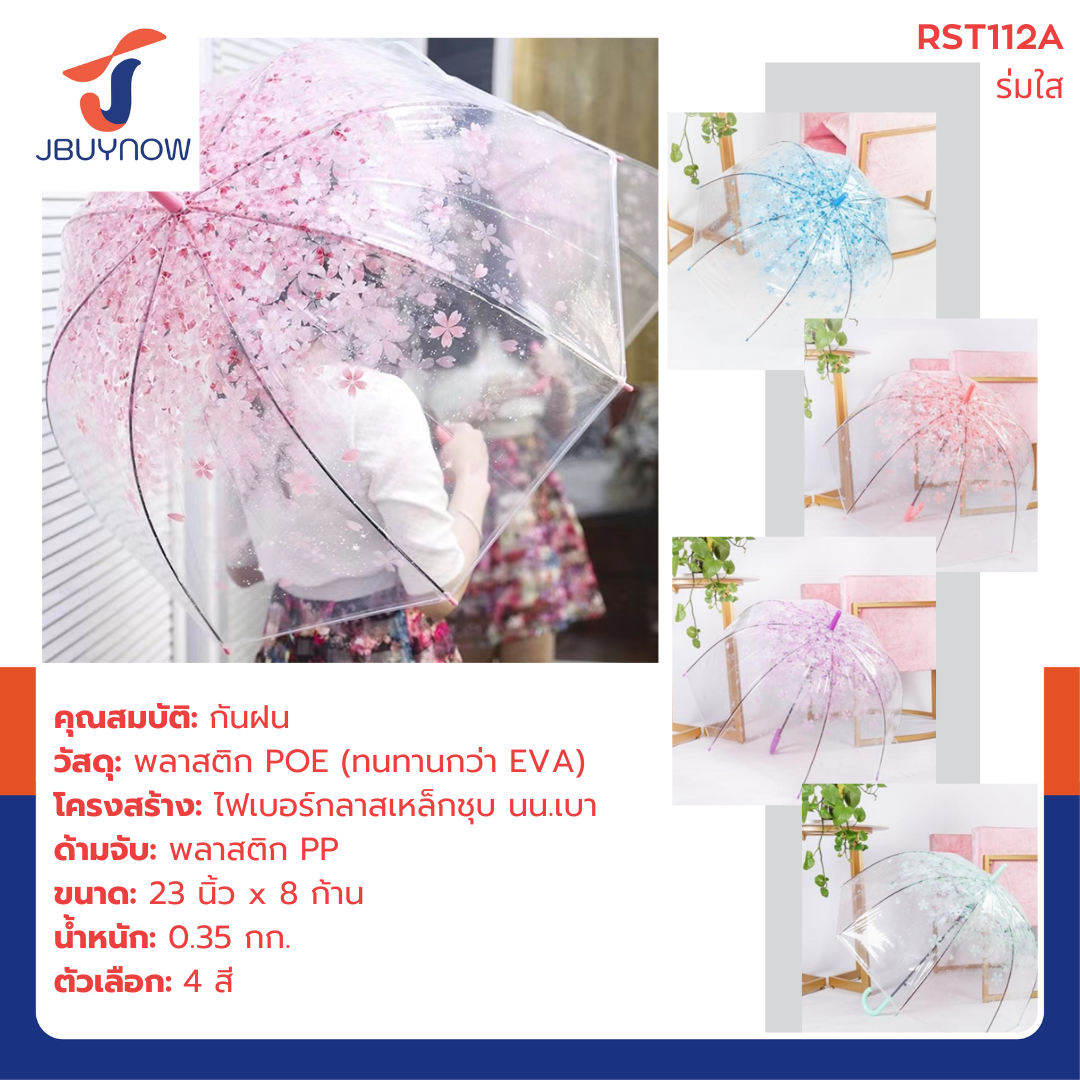 ร่มใส POE ร่มกันฝน ด้ามยาว ลาย ซากุระ คละสี RST112A