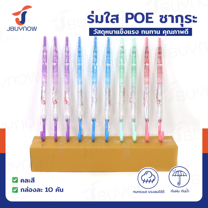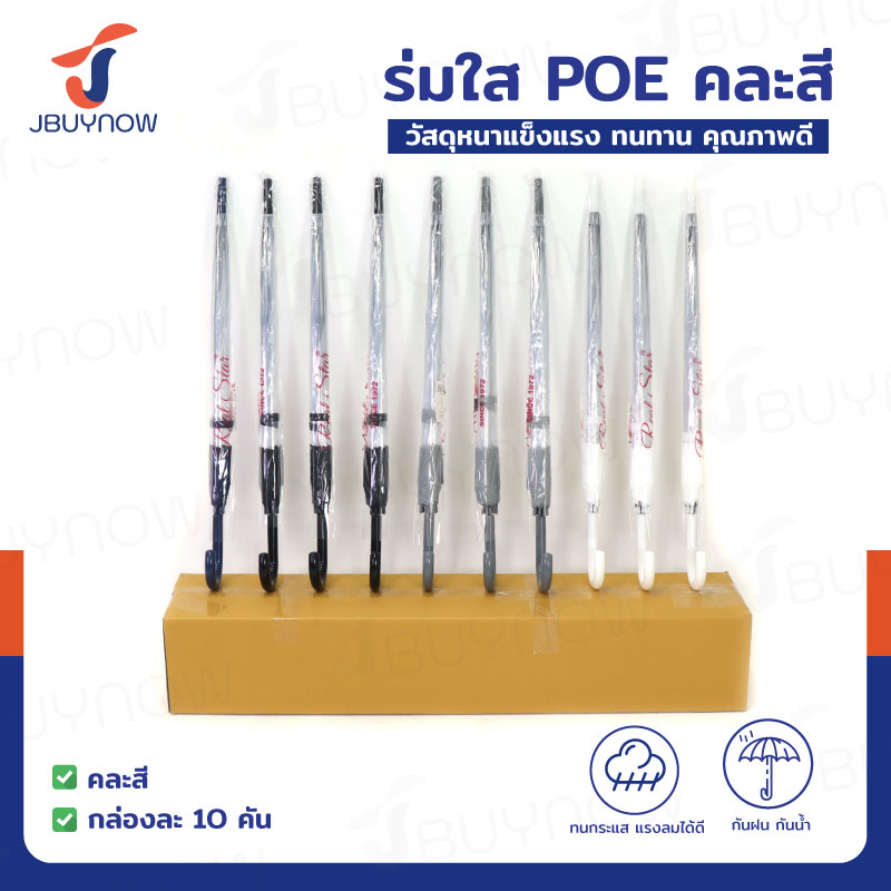ร่มใส POE ร่มพรีเมี่ยม ร่มกันฝน ด้ามยาว คละสี JBUYNOW RST117