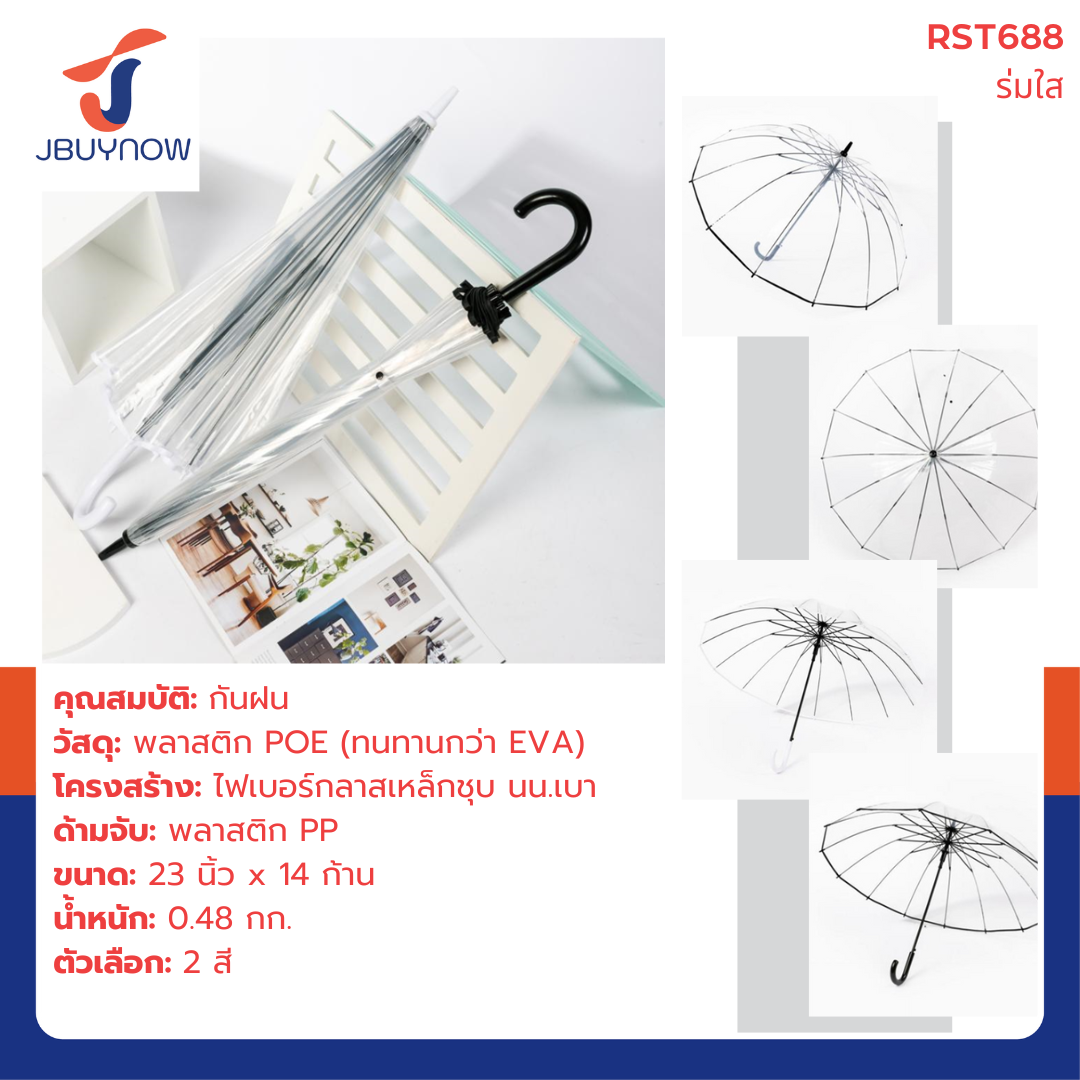 ร่มใส POE ร่มกันฝน ด้ามยาว ด้ามคละสี JBUYNOW RST688