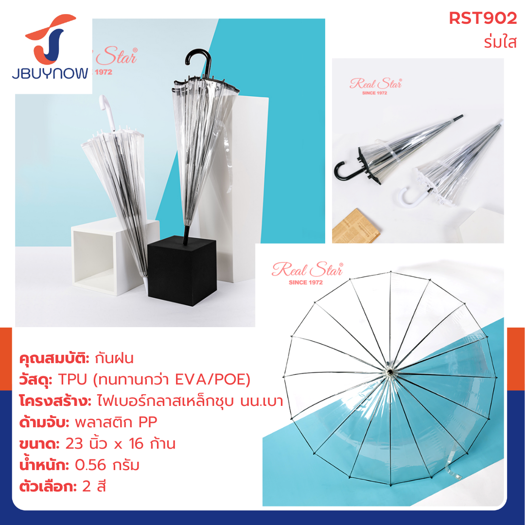 ร่มใส TPU ร่มกันฝน ด้ามยาว คละสี RST902