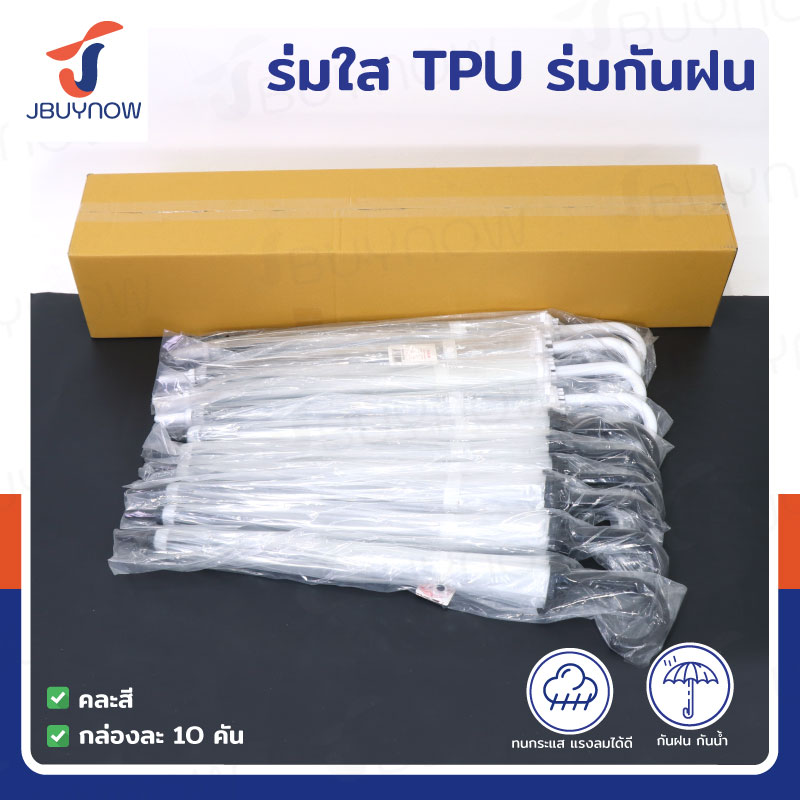ร่มใส TPU ร่มกันฝน ด้ามยาว คละสี แพ็คละ 10 ชิ้น