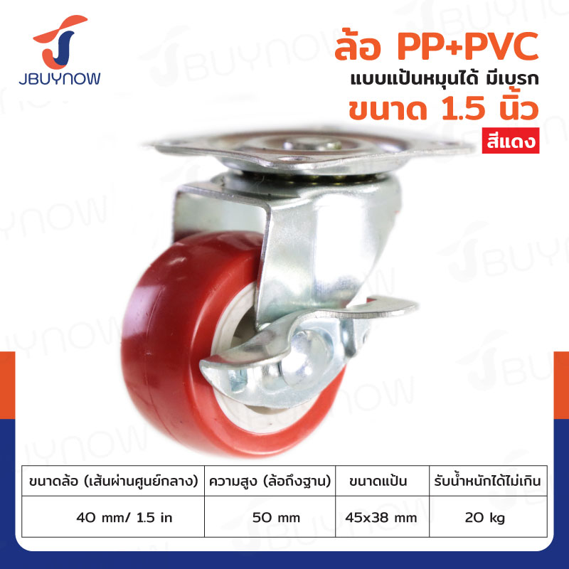 ล้อ 1.5 นิ้ว แป้นเป็น PP+PVC มีเบรก สีแดง JBUYNOW JF-1302040