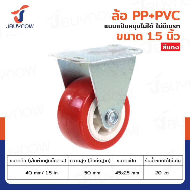ล้อ 1.5 นิ้ว แป้นตาย PP+PVC สีแดง JBUYNOW JF-1306040
