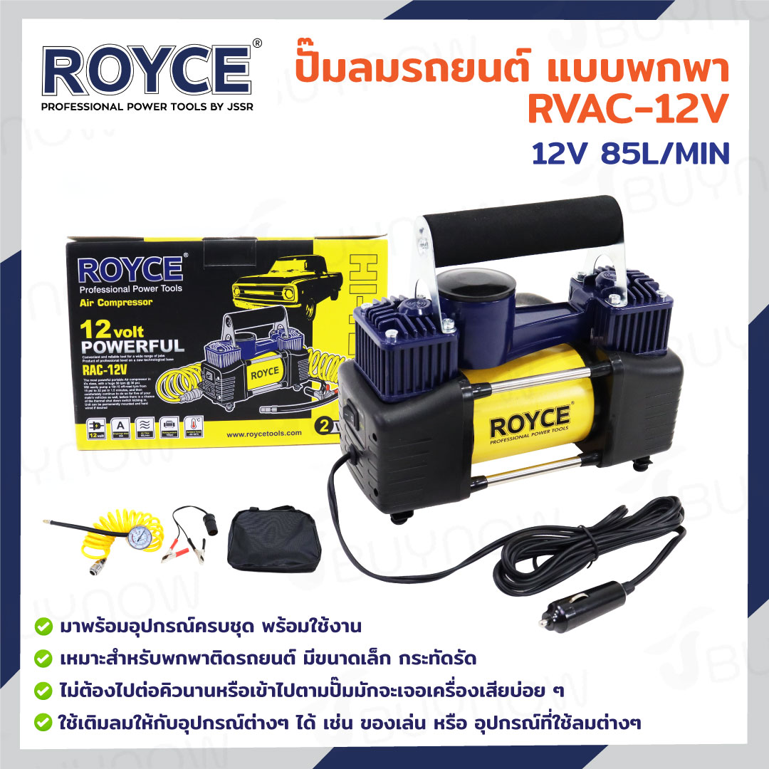 ปั๊มลมรถยนต์ แบบพกพา 12V 85L/MIN JBUYNOW ROYCE RVAC-12V