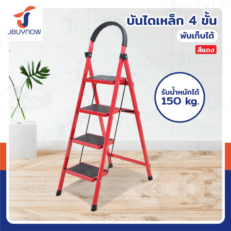 บันไดเหล็ก มีราวจับ (4 ขั้น สูง 1.4 M) รับน้ำหนักได้ 150 KG สีแดง JBUYNOW DT-4