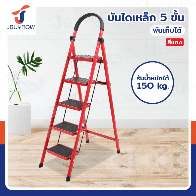 บันไดเหล็ก มีราวจับ (5 ขั้น สูง 1.6 M) รับน้ำหนักได้ 150 KG สีแดง JBUYNOW DT-5