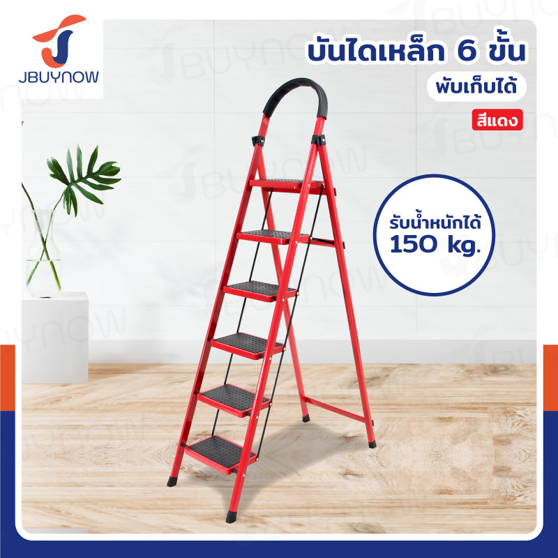 บันไดเหล็ก มีราวจับ (6 ขั้น สูง 1.8 M) รับน้ำหนักได้ 150 KG สีแดง JBUYNOW DT-6