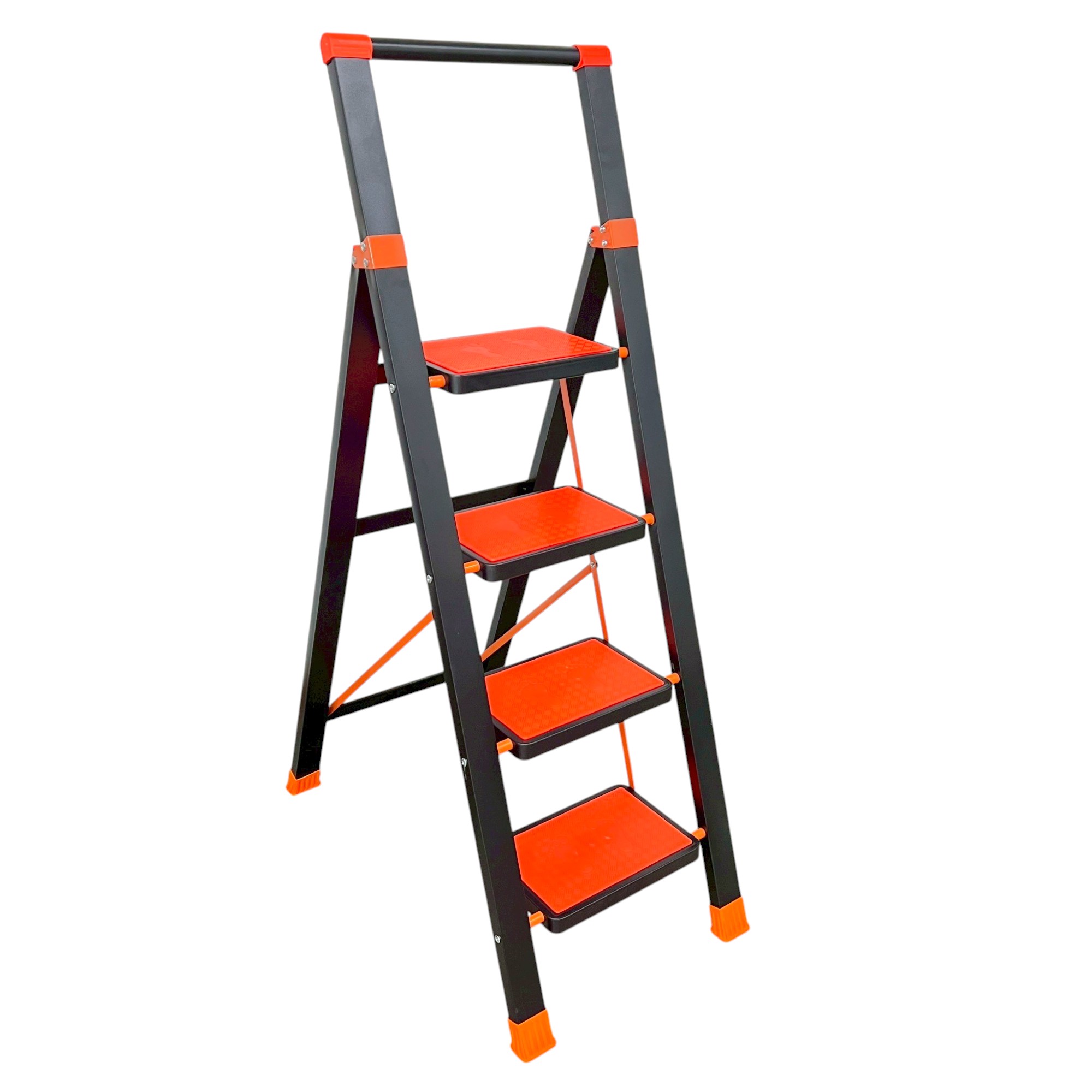 บันไดเหล็ก มีราวจับ (4 ขั้น สูง 1.3 เมตร) รับน้ำหนักได้ 150 KG สีดำ-ส้ม