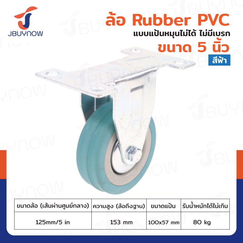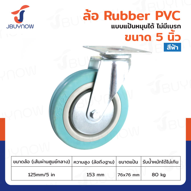 ล้อ 5 นิ้ว แป้นตาย RUBBER PVC สีฟ้า JF-1015125 【สินค้า Pre-Order】
