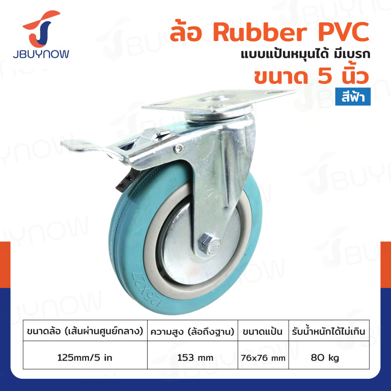 ล้อ 5 นิ้ว แป้นเป็น มีเบรก RUBBER PVC สีฟ้า JF-1010125 【สินค้า Pre-Order】