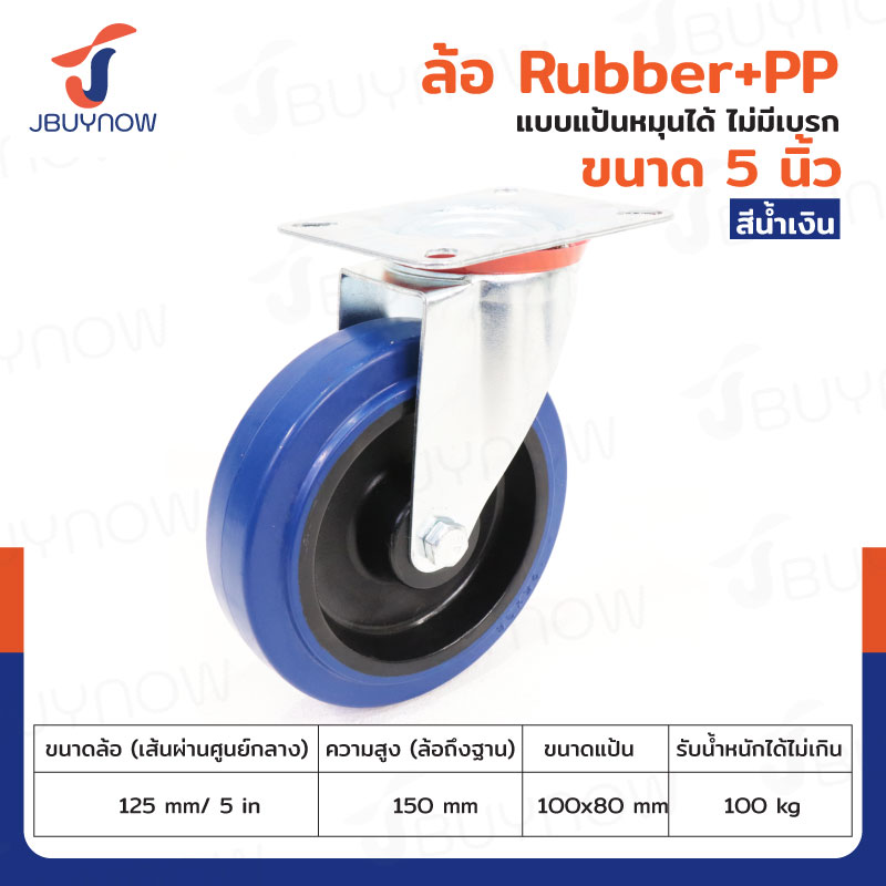 ล้อ 5 นิ้ว แป้นตาย RUBBER+PP สีน้ำเงิน JBUYNOW JF-1081125