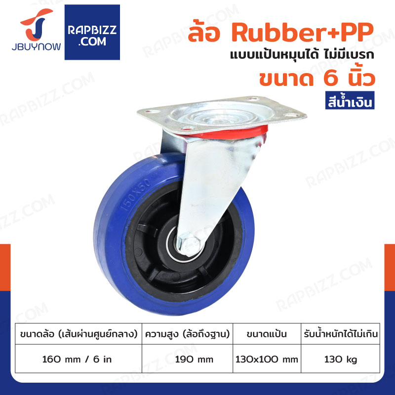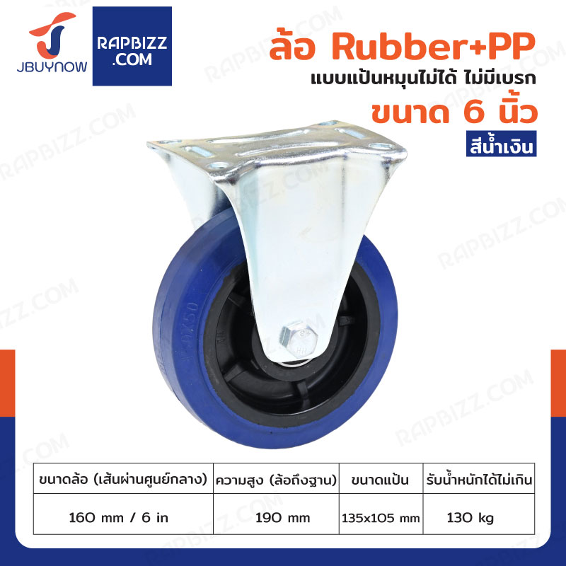 ล้อ 6 นิ้ว แป้นตาย RUBBER+PP สีน้ำเงิน JBUYNOW JF-1082160