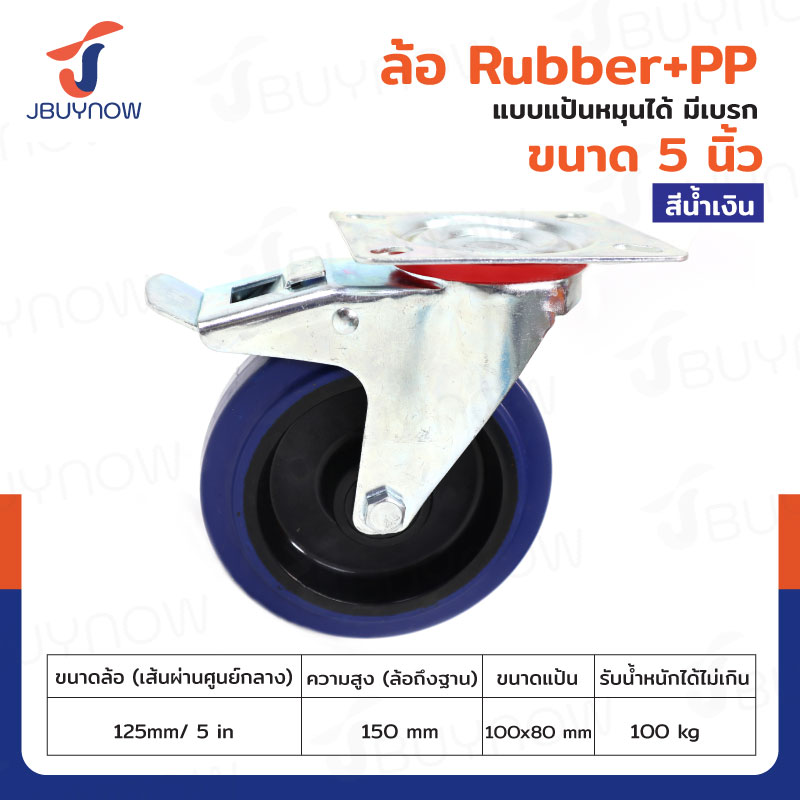 ล้อ 5 นิ้ว แป้นเป็น มีเบรก RUBBER+PP สีน้ำเงิน JBUYNOW JF-1075125