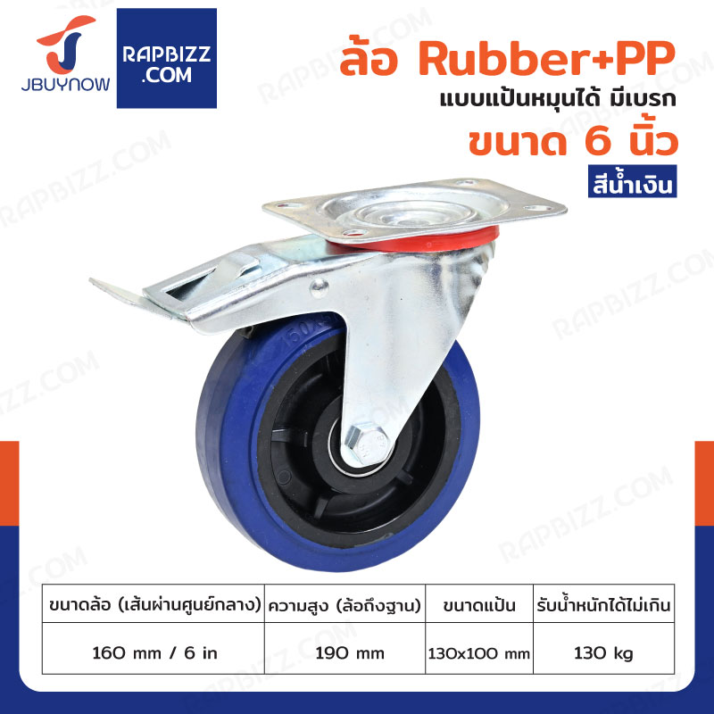 ล้อ 6 นิ้ว แป้นเป็น มีเบรก RUBBER+PP สีน้ำเงิน JBUYNOW JF-1076160