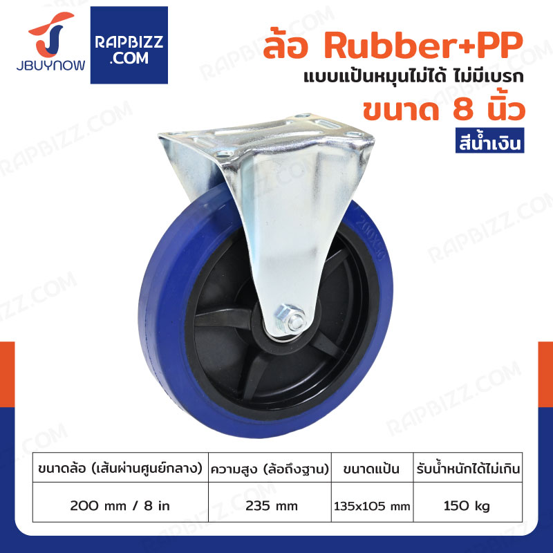 ล้อ 8 นิ้ว แป้นตาย RUBBER+PP สีน้ำเงิน JF-1083200