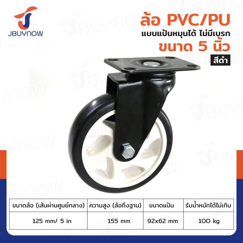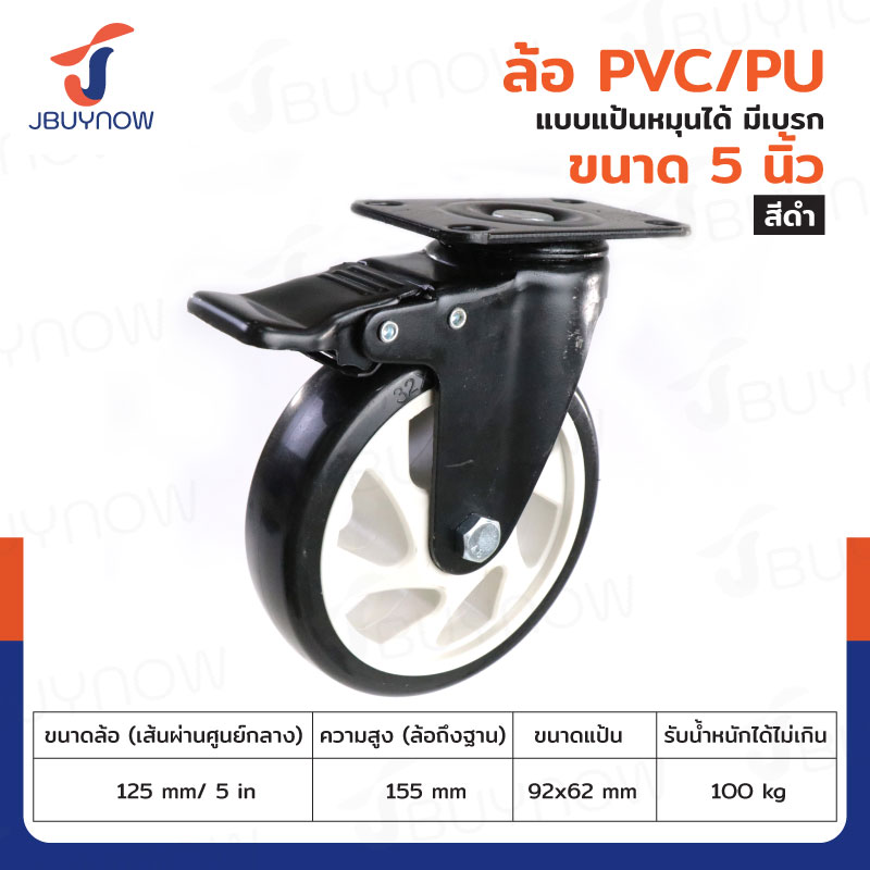 ล้อ 5 แป้นเป็น มีเบรก PVC/PU สีดำ JBUYNOW JF-1345125