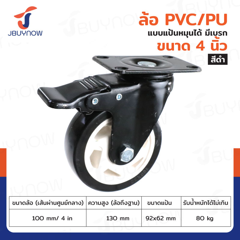 ล้อ 4 แป้นเป็น มีเบรก PVC/PU สีดำ JBUYNOW JF-1344100
