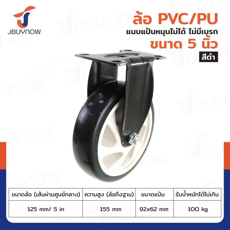 ล้อ 5 แป้นตาย PVC/PU สีดำ JBUYNOW JF-1351125