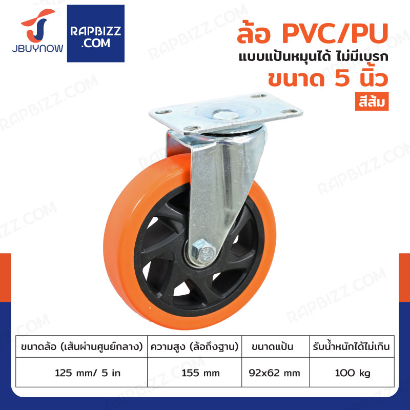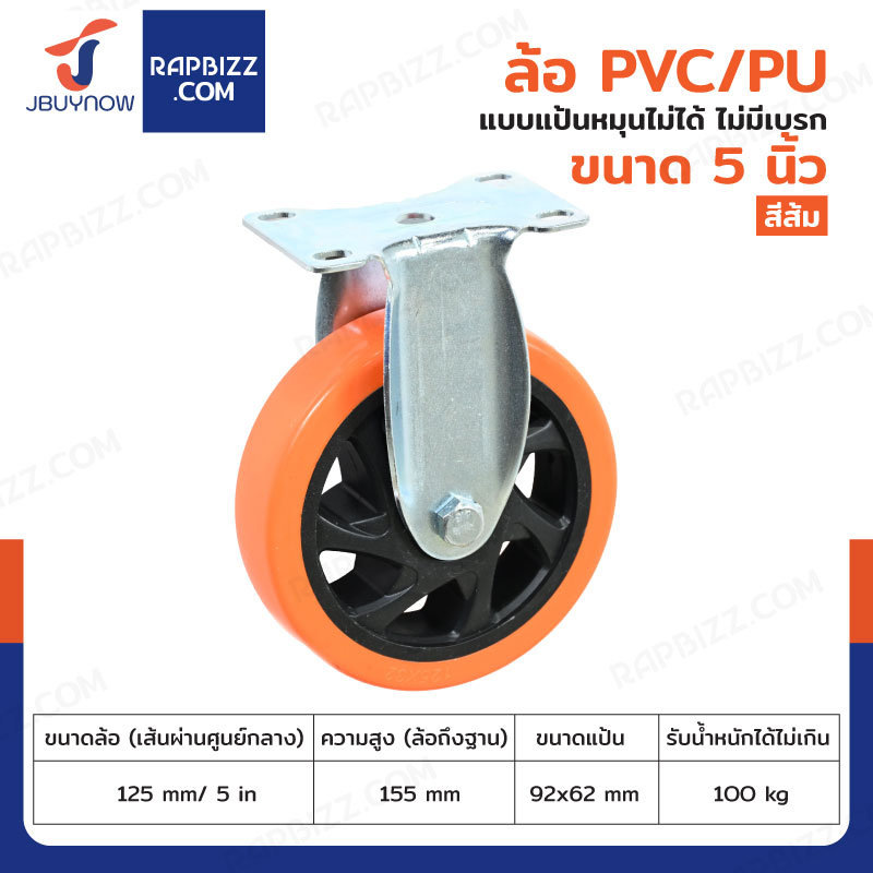 ล้อ 5 นิ้ว แป้นตาย PVC/PU สีส้ม JBUYNOW JF-1457125