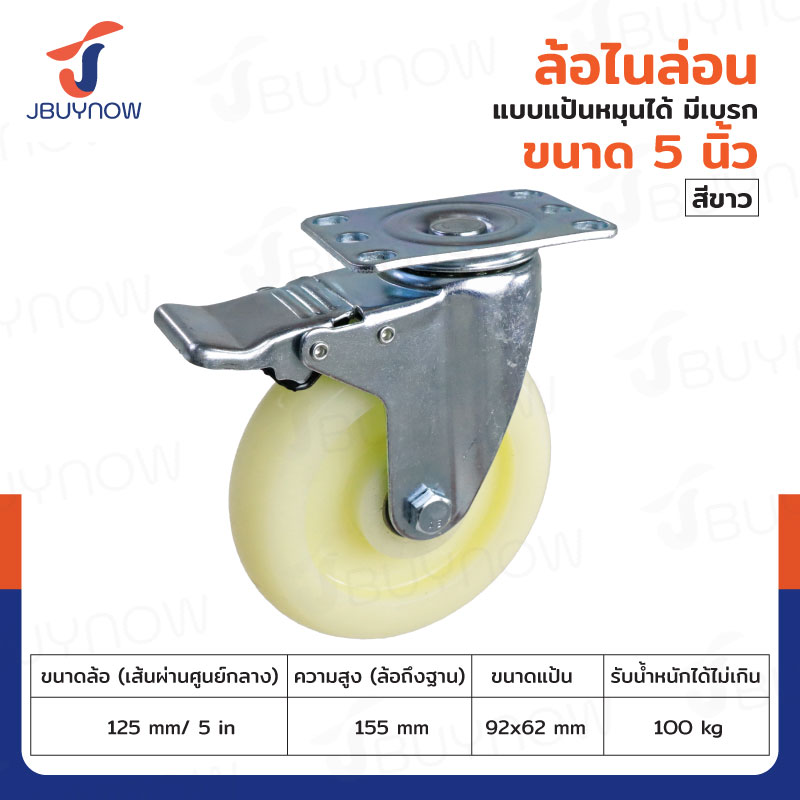 ล้อ 5 นิ้ว แป้นเป็น มีเบรก ไนล่อน สีขาว JBUYNOW JF-1473125