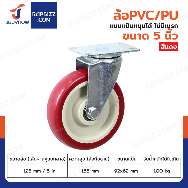 ล้อ 5 นิ้ว แป้นเป็น PVC/PU สีแดง JBUYNOW JF-1481125