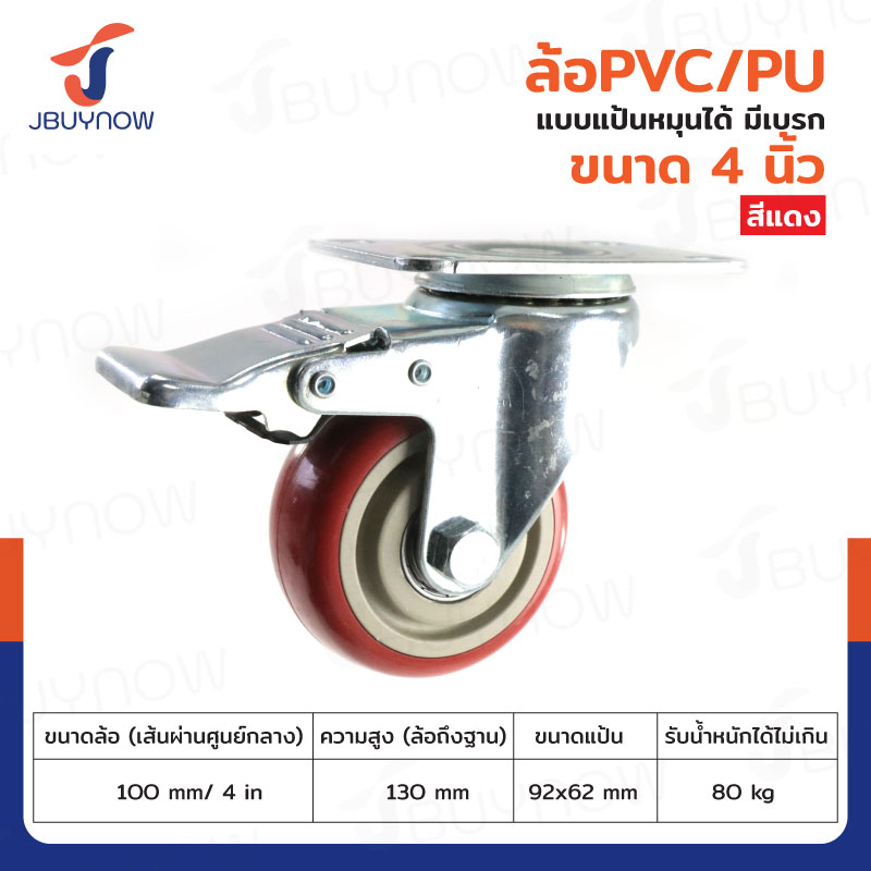 ล้อ 4 แป้นเป็น มีเบรก PVC/PU สีแดง JBUYNOW JF-1484100