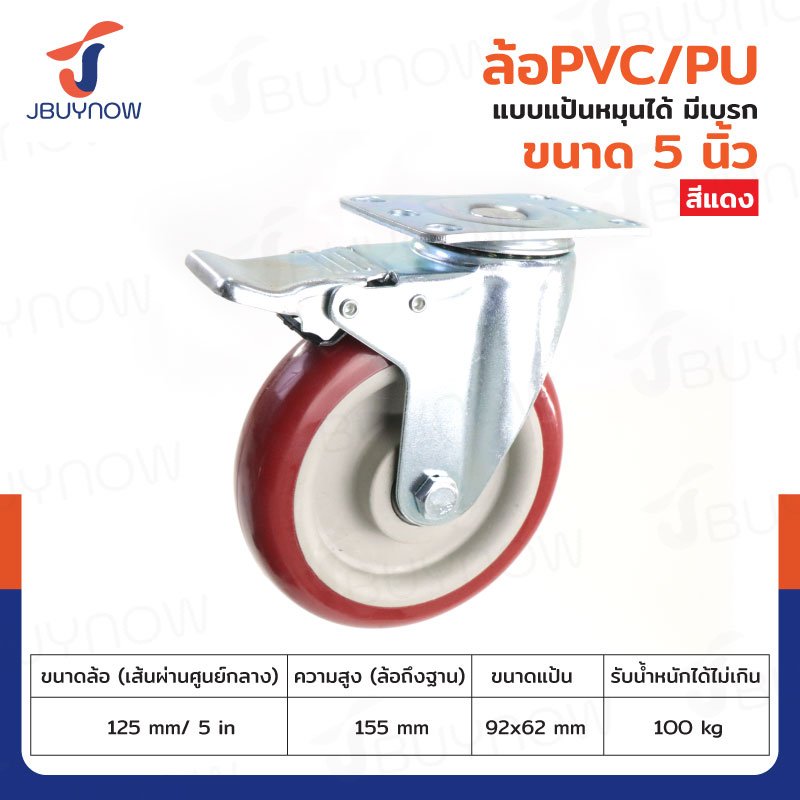 ล้อ 5 นิ้ว แป้นเป็น มีเบรก PVC/PU สีแดง JBUYNOW JF-1485125
