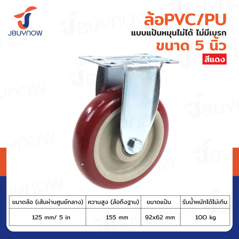 ล้อ 5 นิ้ว แป้นตาย PVC/PU สีแดง JBUYNOW JF-1489125