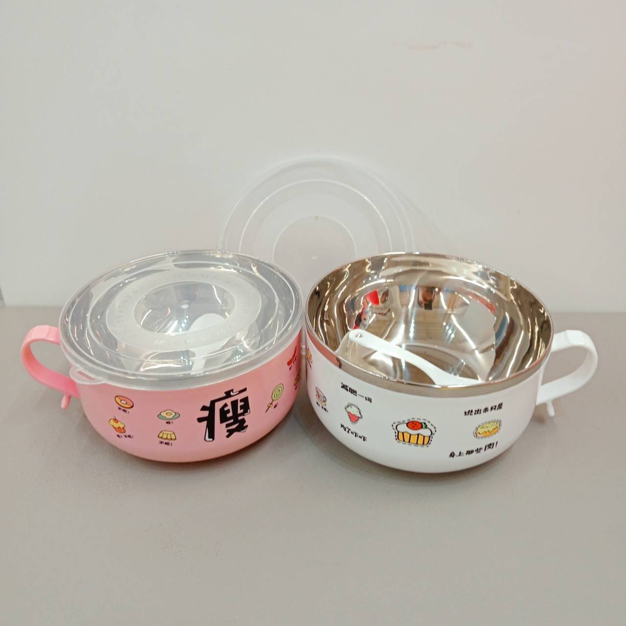 ถ้วยสแตนเลส ชามบะหมี่สแตนเลส อเนกประสงค์ มีฝาปิด มีหูจับ คละสี ML-6011
