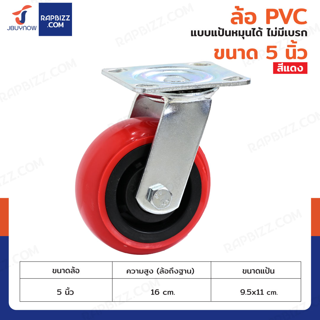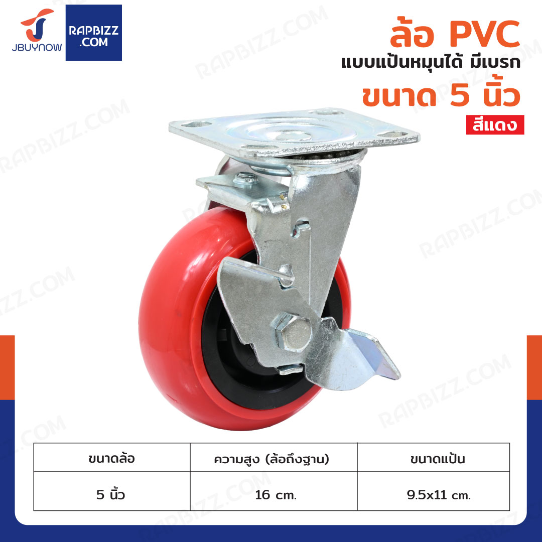 ล้อ PVC 5 นิ้ว ล้อเป็น เบรคข้างสีแดง พร้อมชุดสกรูน็อต 4 ตัว/ชุด