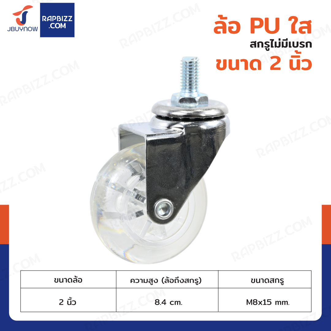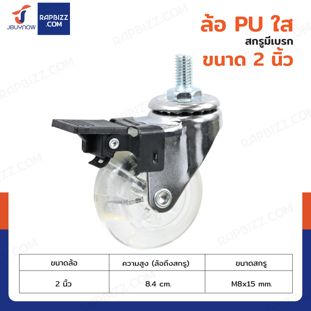 ล้อ PU ใส 2 นิ้ว สกรูมีเบรก M8x15