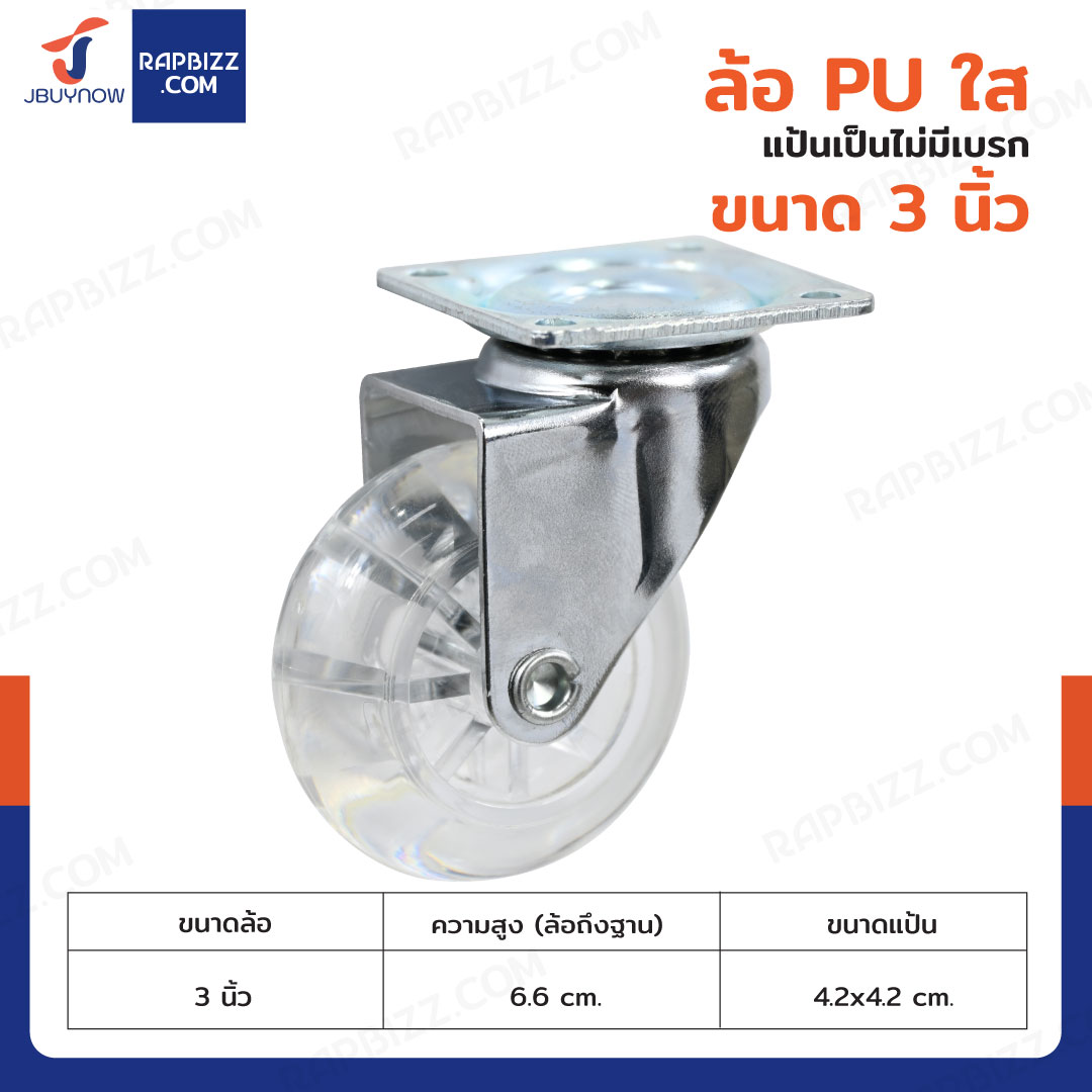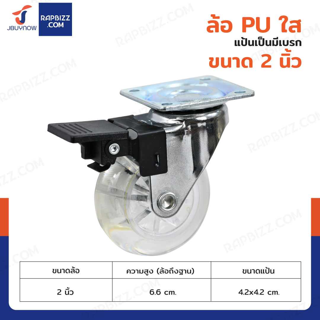 ล้อ PU ใส 2 นิ้ว แป้นเป็นมีเบรก