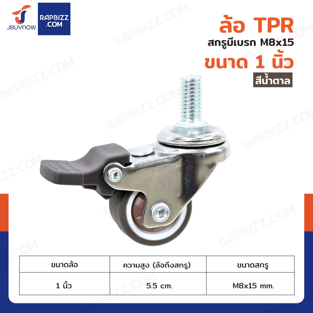 ล้อ TPR 1 นิ้ว สกรูมีเบรก M8x15 สีน้ำตาล