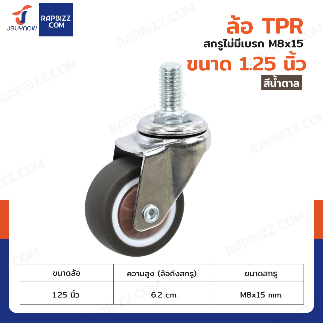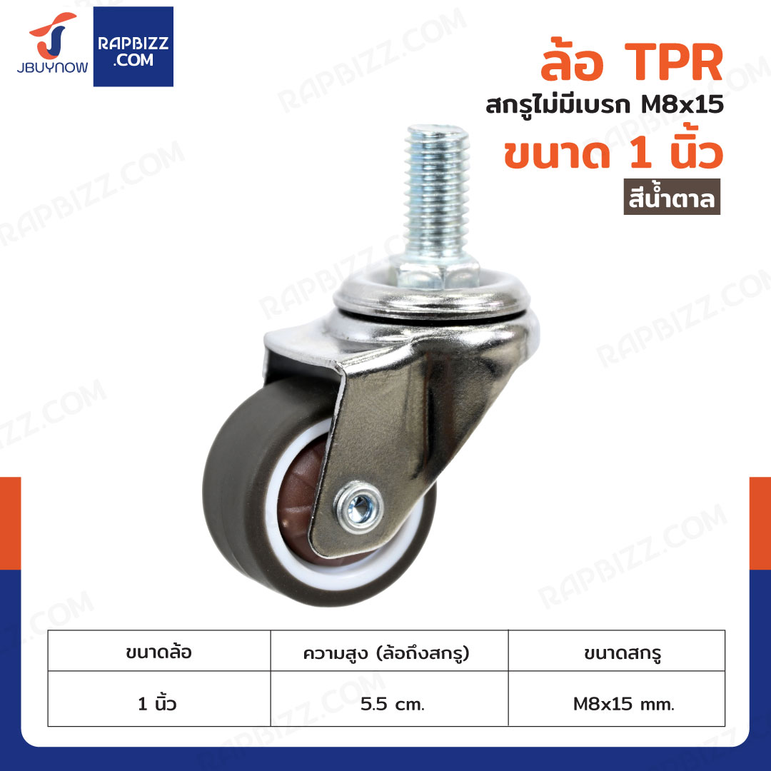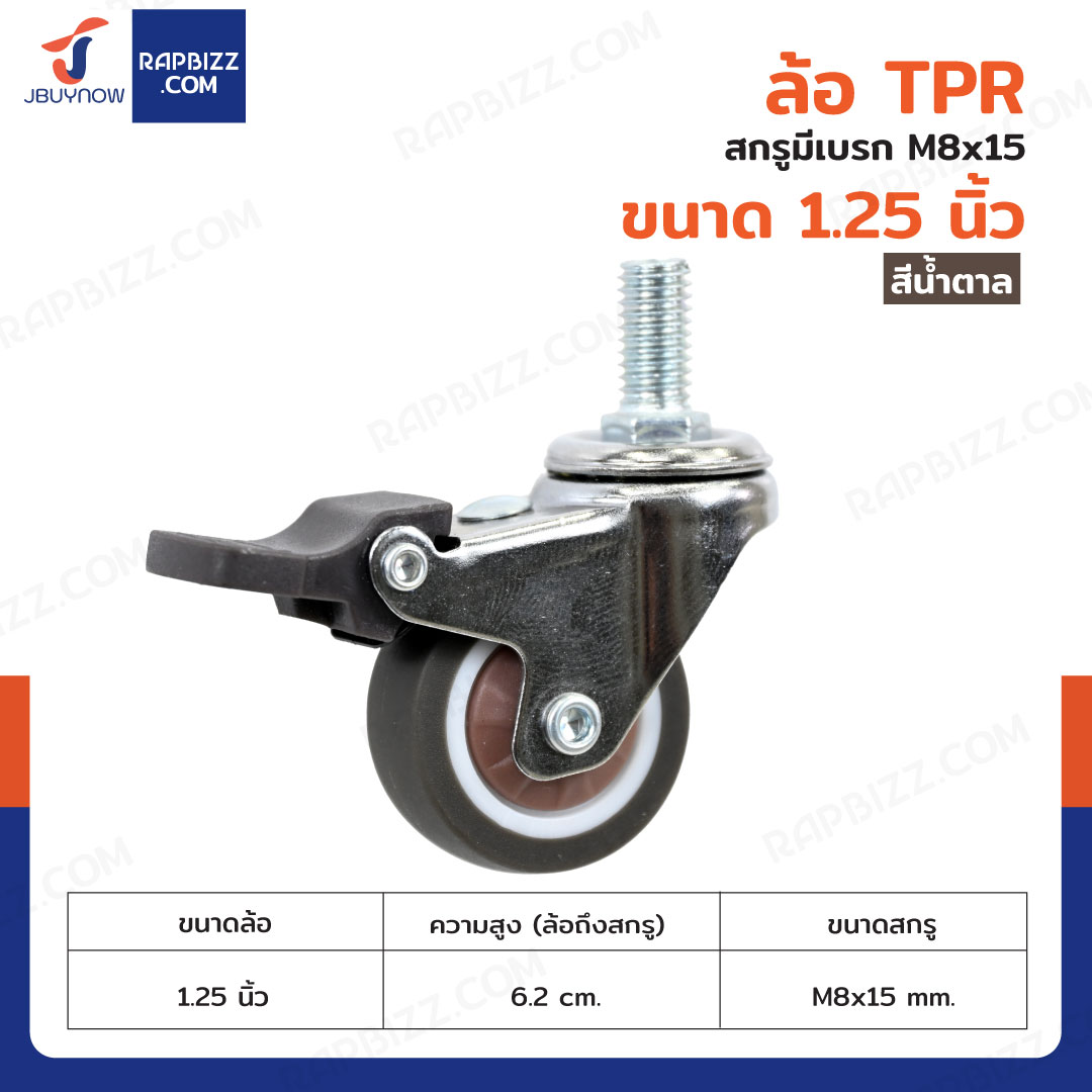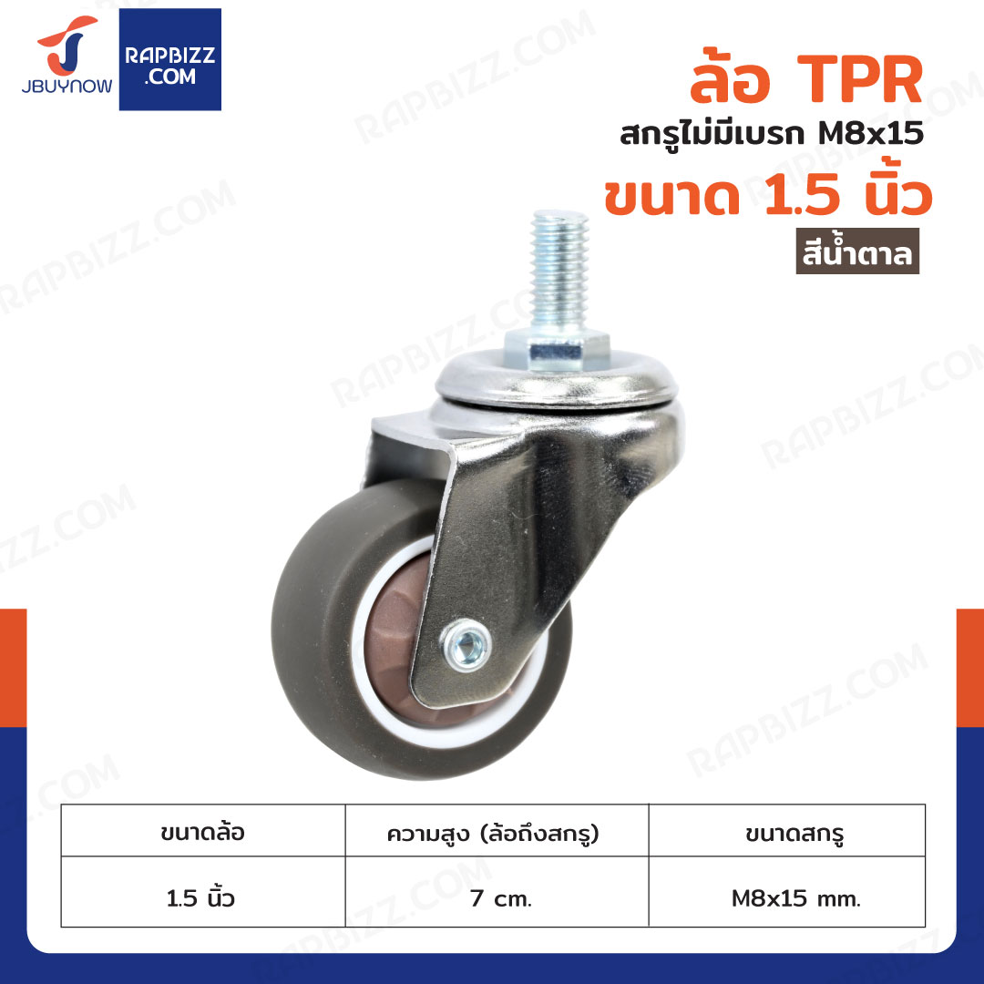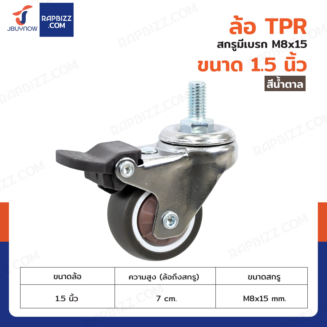ล้อ TPR 1.5 นิ้ว สกรู M8x15 สีน้ำตาล
