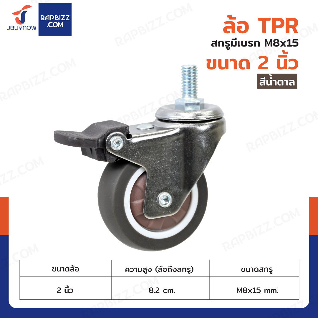 ล้อ TPR 2 นิ้ว สกรูมีเบรก M8x15 สีน้ำตาล