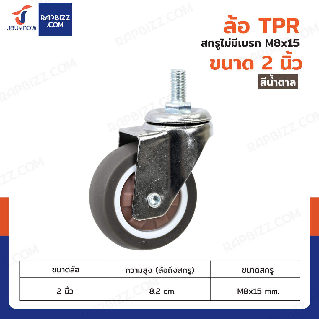 ล้อ TPR 2 นิ้ว สกรู M8x15 สีน้ำตาล