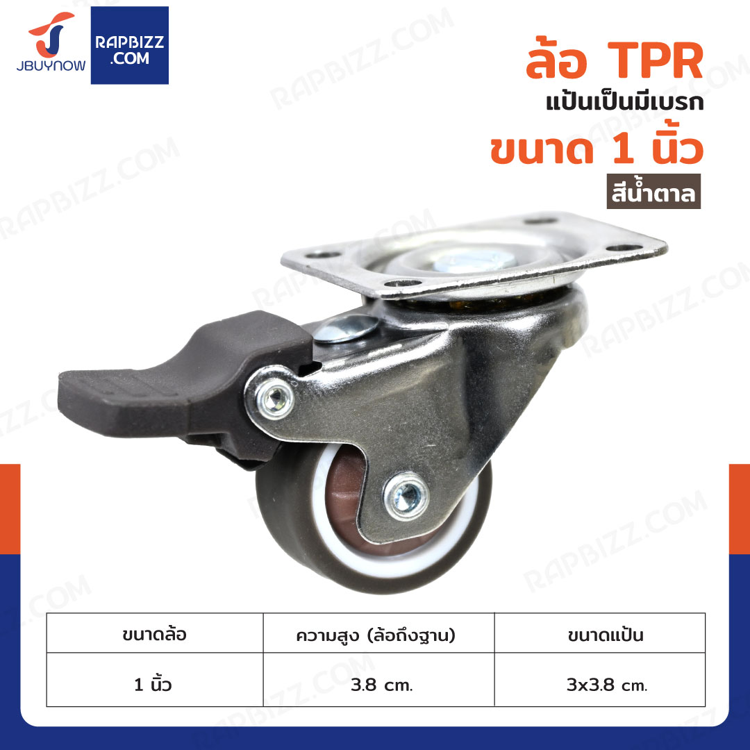 ล้อ TPR 1 นิ้ว แป้นเป็นมีเบรก สีน้ำตาล