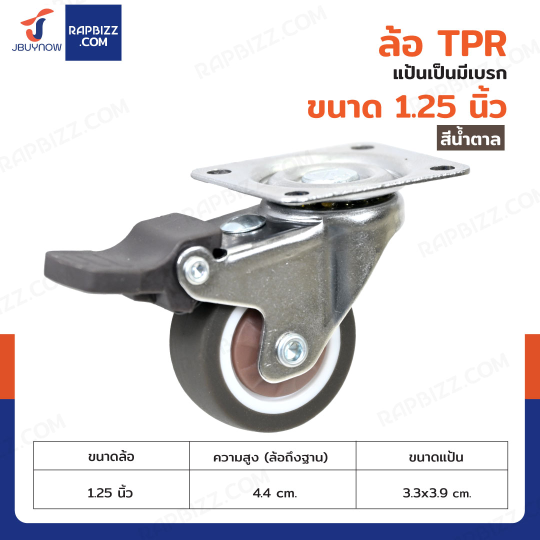 ล้อ TPR 1.25 นิ้ว แป้นเป็นมีเบรก สีน้ำตาล