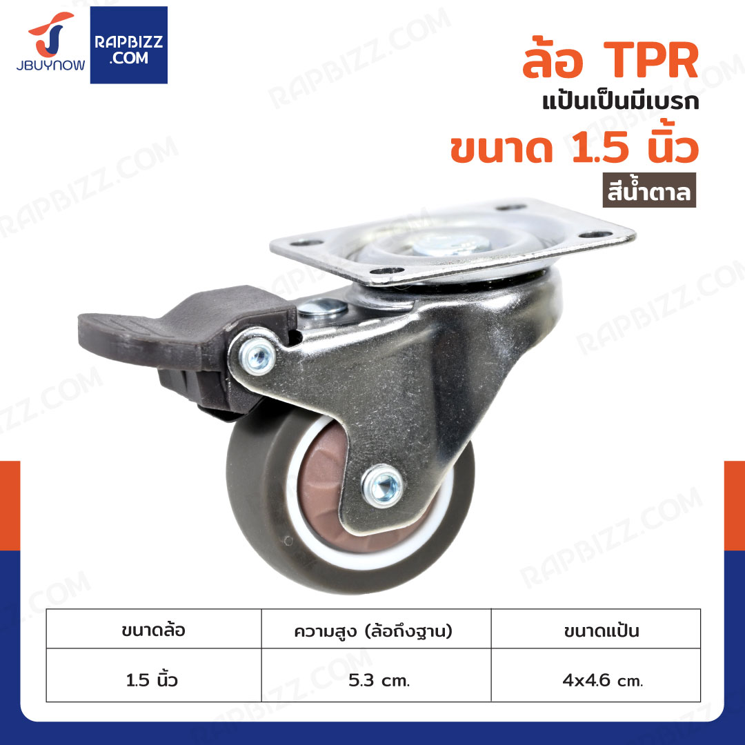 ล้อ TPR 1.5 นิ้ว แป้นเป็นมีเบรก สีน้ำตาล