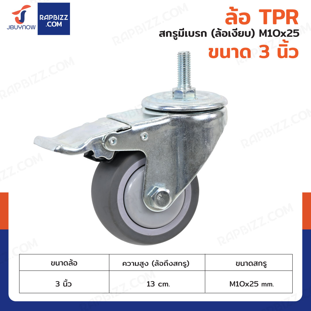 ล้อ TPR 3 นิ้ว สกรูมีเบรก(ล้อเงียบ) M10x25