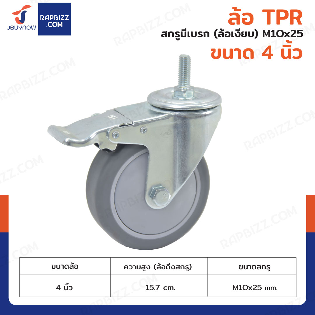 ล้อ TPR 4 นิ้ว สกรูมีเบรก(ล้อเงียบ) M10x25