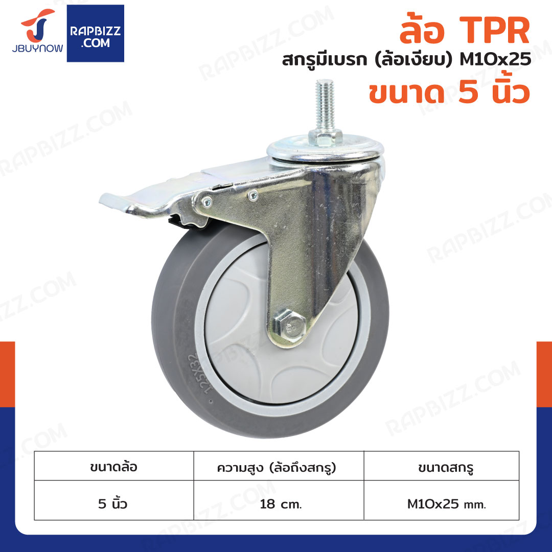 ล้อ TPR 5 นิ้ว สกรูมีเบรก(ล้อเงียบ) M10x25