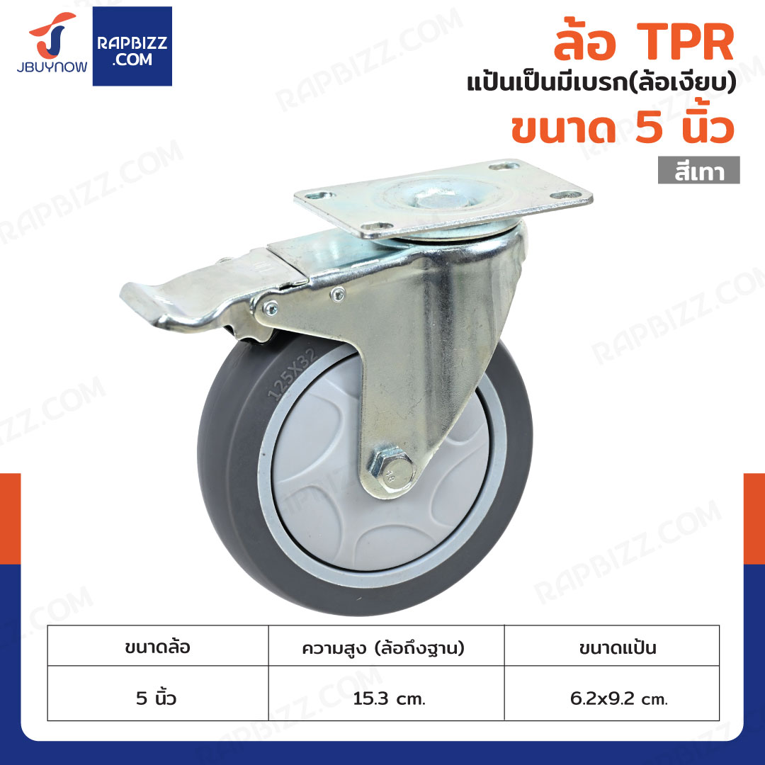 ล้อ TPR 5 นิ้ว แป้นเป็นมีเบรก(ล้อเงียบ)