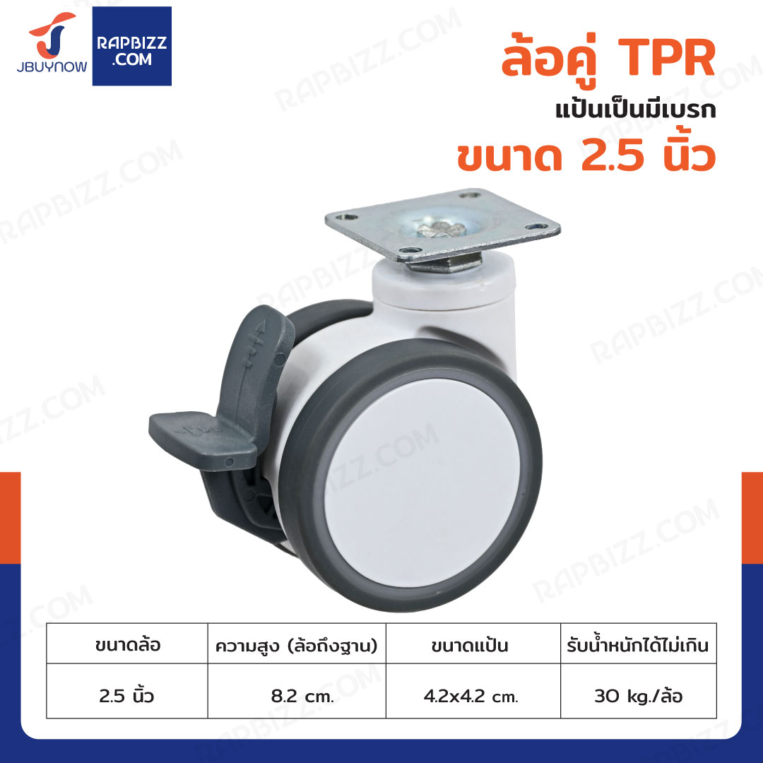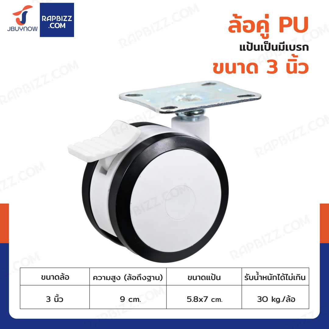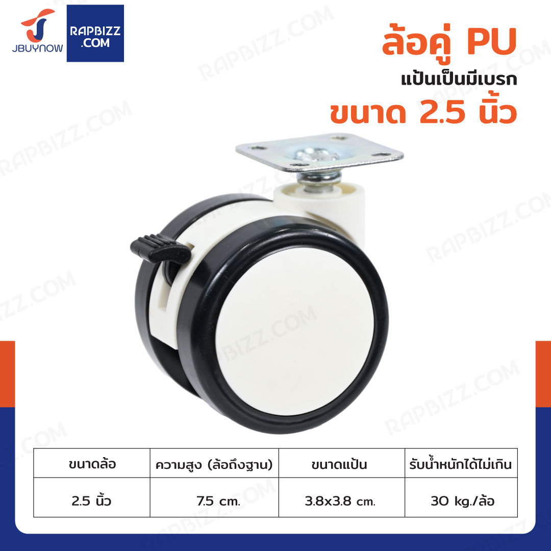ล้อคู่ 2.5 นิ้ว แป้นเป็นมีเบรก