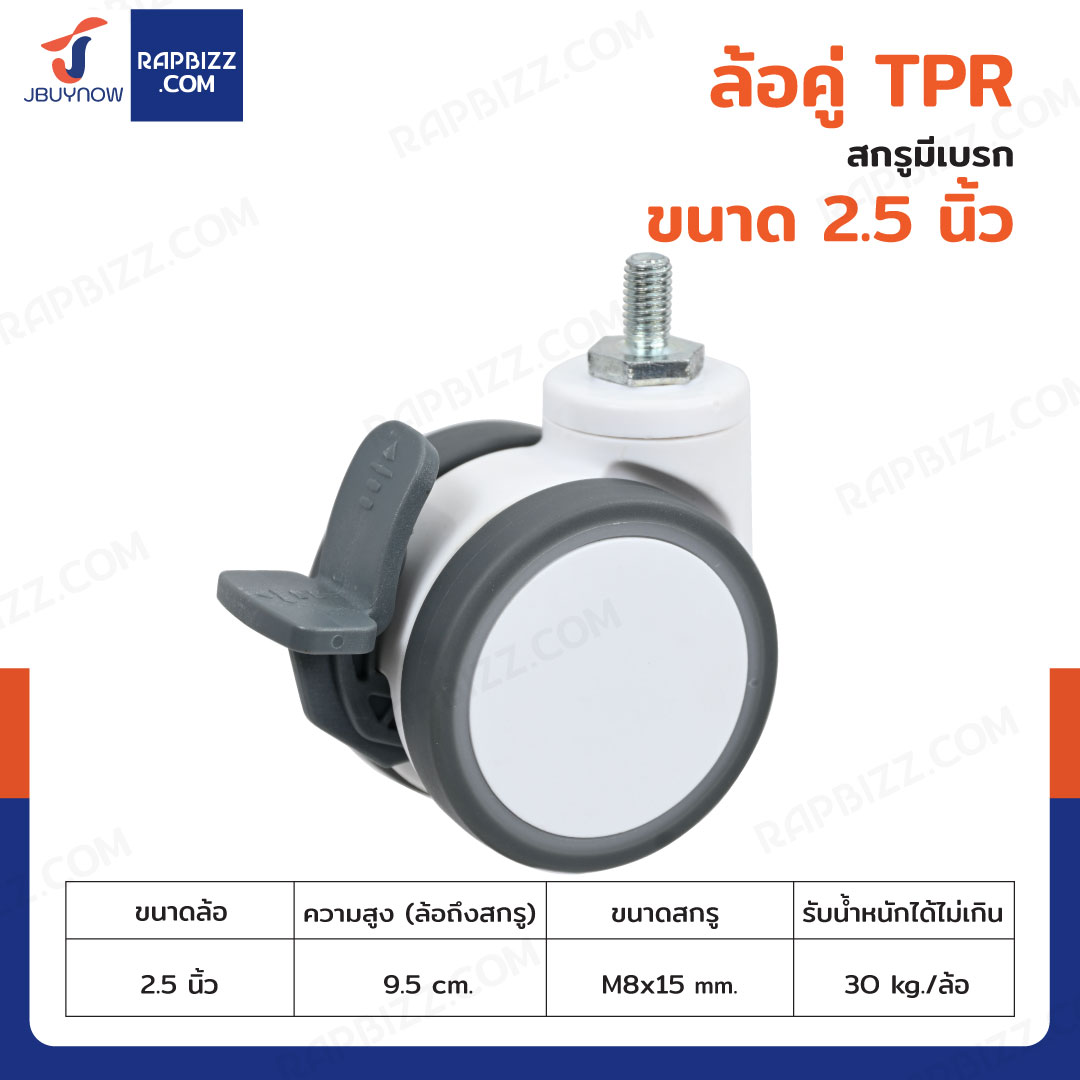 ล้อคู่ TPR 2.5 นิ้ว สกรูมีเบรก M8x15 สีทูโทนเทา