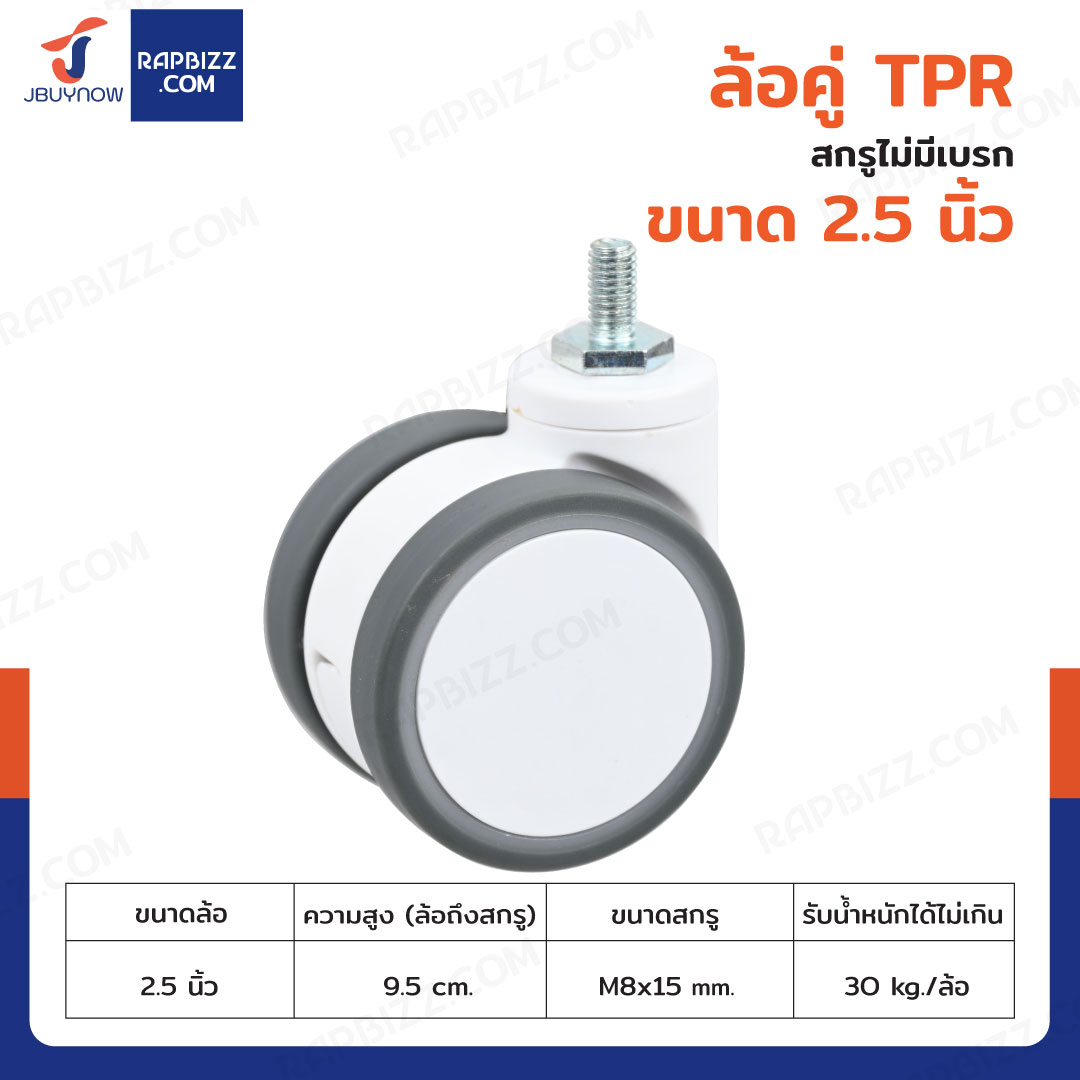 ล้อคู่ TPR 2.5 นิ้ว สกรู M8x15 สีทูโทนเทา