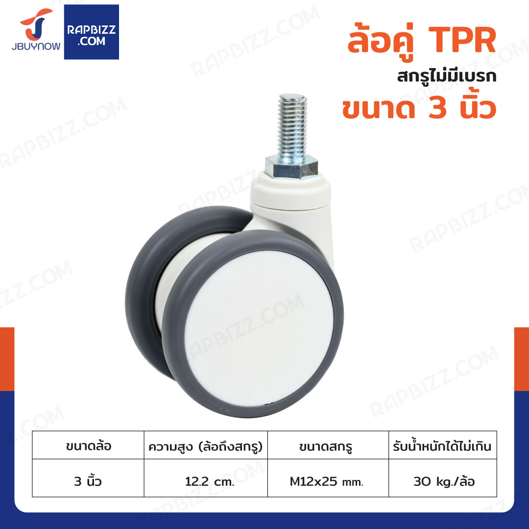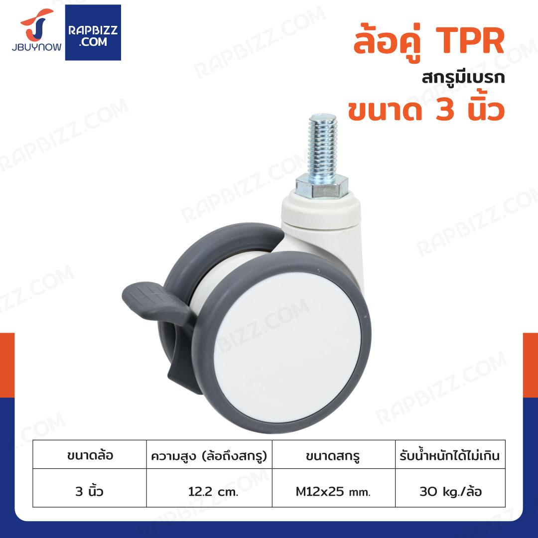 ล้อคู่ TPR 3 นิ้ว สกรูมีเบรก M12x25 สีทูโทนเทา