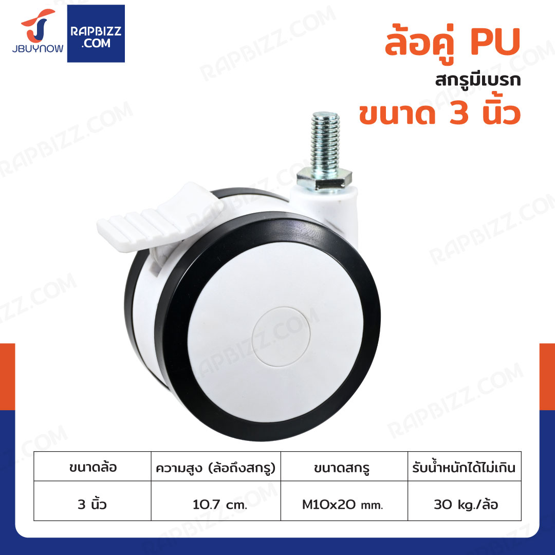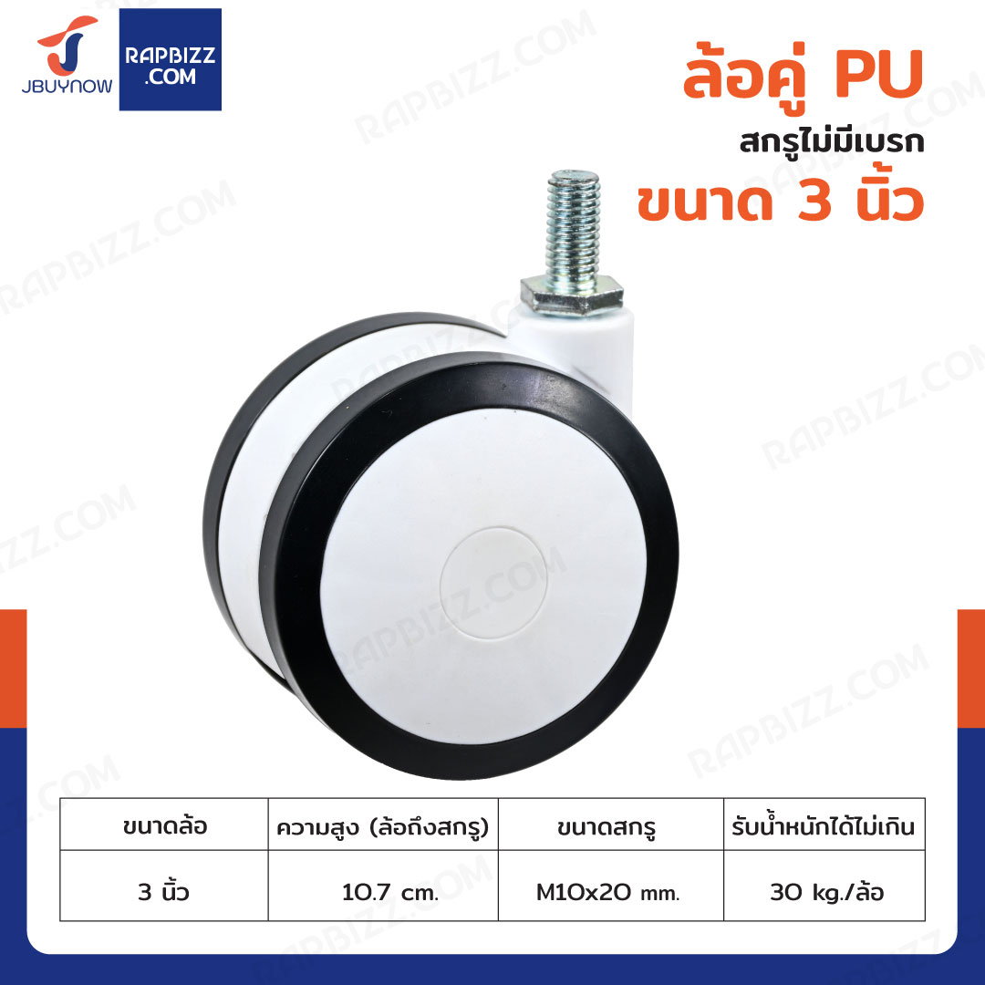 ล้อคู่ 3 นิ้ว สกรูมีเบรก M10x20 สีทูโทนดำ