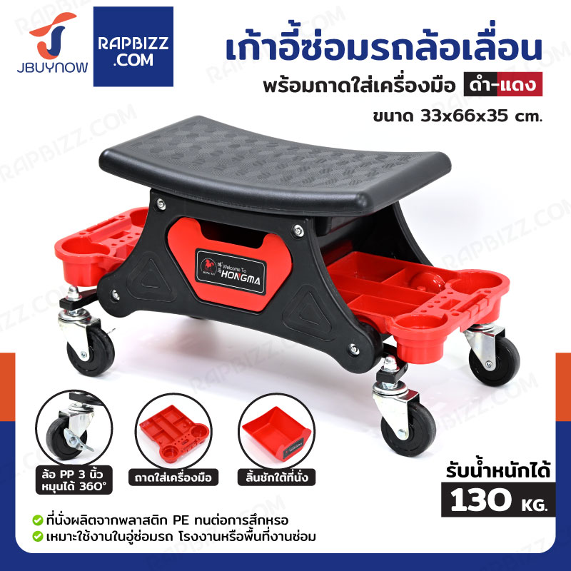 Hongma เก้าอี้ช่าง ซ่อมรถล้อเลื่อน พร้อมถาดใส่เครื่องมือ สีดำ-แดง