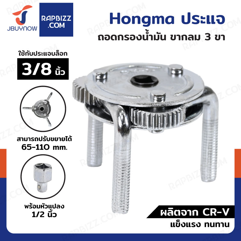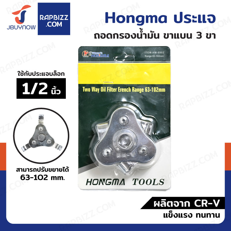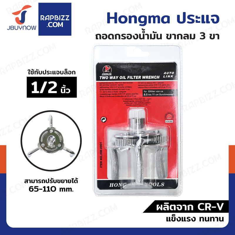 Hongma ประแจ ถอดกรองน้ำมัน ถอดไส้หม้อกรอง ขาแบน 3 ขา 1/2 นิ้ว